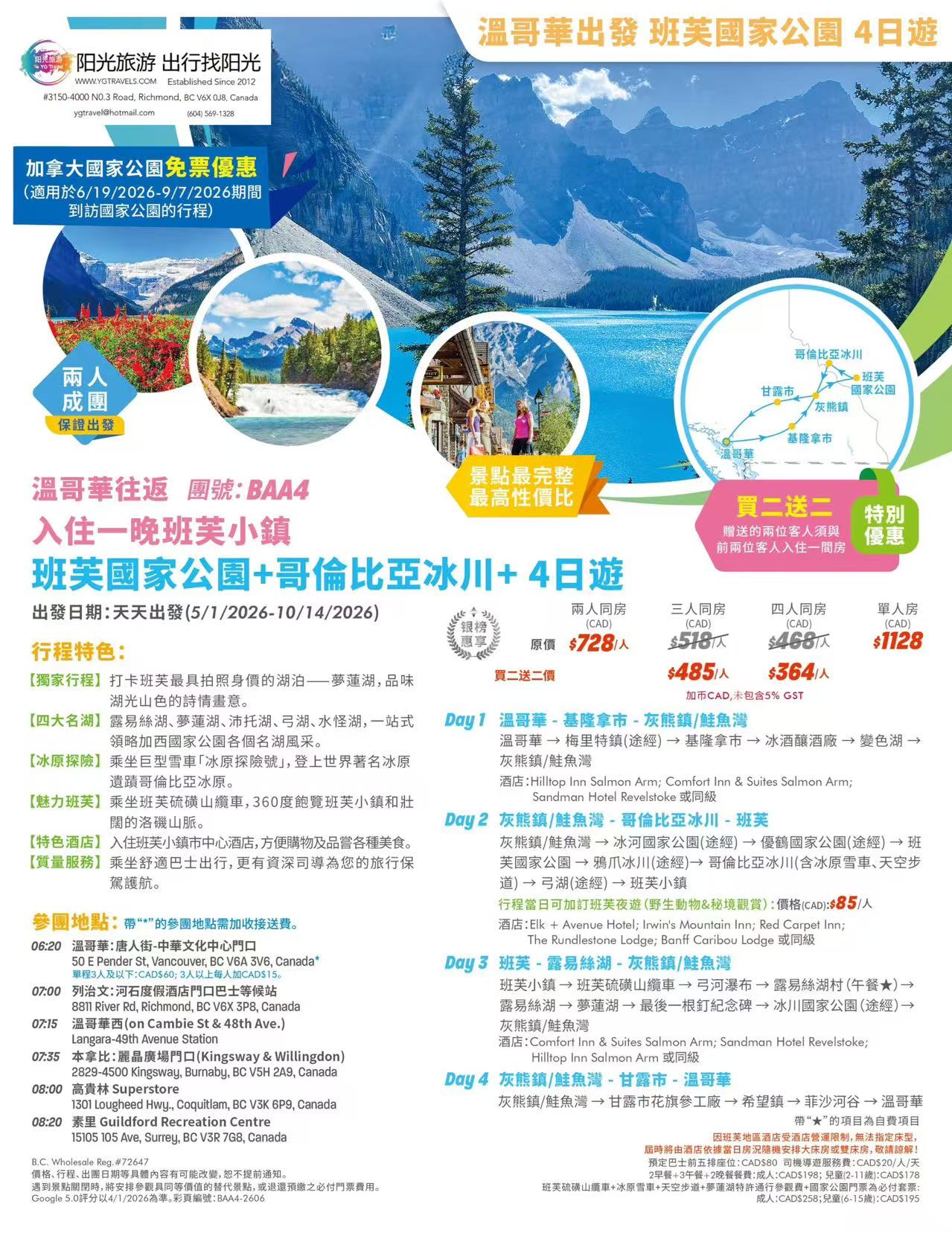 YG Travel阳光旅游 自从2012年成立,致力于服务华人旅客,